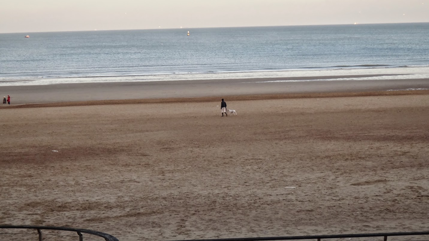 Vous voyez ce petit point blanc et noir ? C’est mon ami Roger qui promène ses deux lévriers sauvés des mauvais traitements qu’ils ont subis en fin de carrière de chiens de chasse en Espagne et chez qui je me délecte tous les jours de plats plus raffinés les uns que les autres Une des raisons du plaisir que j’ai à vivre ici.